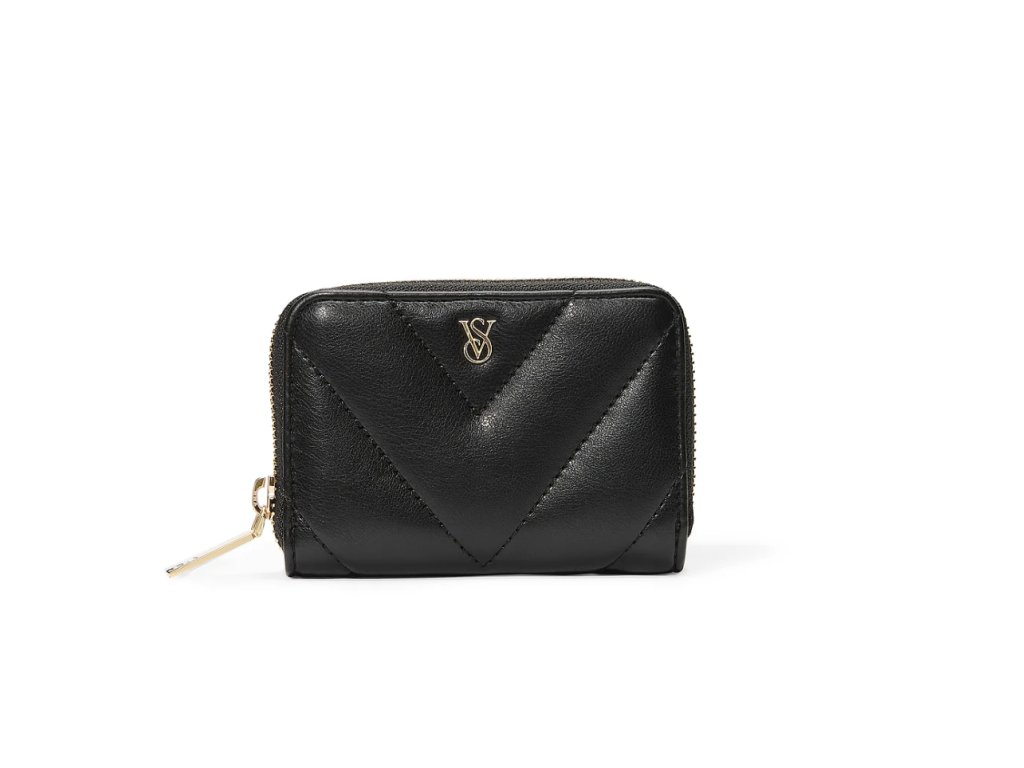 Tento štýlový mini doplnok je praktickým must-have kúskom pre každý deň. Má klasické zipsové zapínanie po obvode, ktoré bezpečne ochráni tvoje karty a hotovosť. Elegantný prešívaný V-quilt vzor a kovové logo Victoria’s Secret dodávajú peňaženke luxusný vzhľad.Tento štýlový mini doplnok je praktickým must-have kúskom pre každý deň. Má klasické zipsové zapínanie po obvode, ktoré bezpečne ochráni tvoje karty a hotovosť. Elegantný prešívaný V-quilt vzor a kovové logo Victoria’s Secret dodávajú peňaženke luxusný vzhľad.